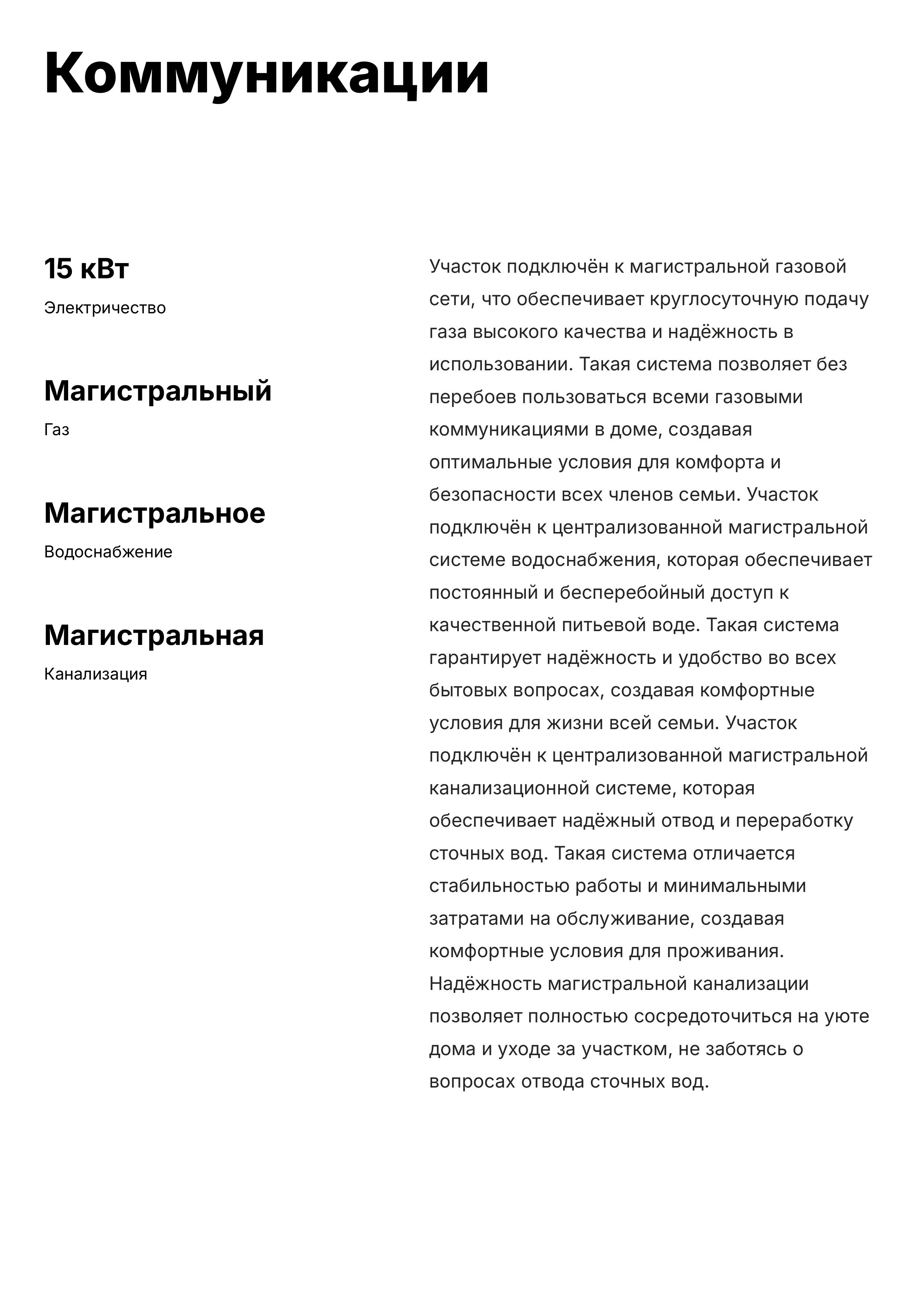 Этот коттедж – это инвестиция в ваше будущее, в здоровье и счастье вашей семьи. Это возможность жить в гармонии с природой, не отказываясь от преимуществ современной цивилизации. Не откладывайте свою мечту на потом – позвоните нам прямо сейчас, чтобы договориться о просмотре и лично убедиться, что именно этот дом станет вашим идеальным пристанищем. Мы уверены, что, оказавшись здесь, вы почувствуете, что нашли именно то, что искали.